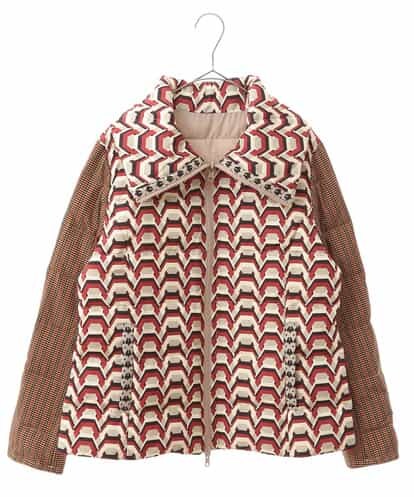 3パターンのジオメトリック柄が目を惹く、中綿仕様の暖かいジップアップブルゾン。これからの寒いシーズンのコーディネイトを華やかに演出してくれる個性的なブルゾンです。裏面は無地で、リバーシブルでプレーンなデザインを楽しめるのも嬉しい一着です。model:H167 B80 W59 H85 着用サイズ:M