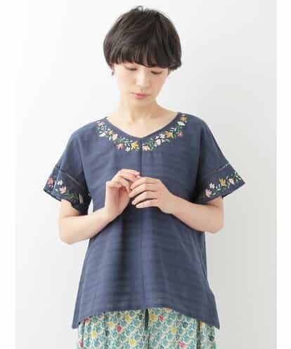 【刺繍アイテム】カラミFLORES EMB 刺繍フレアスリーブブラウス ネイビー 42