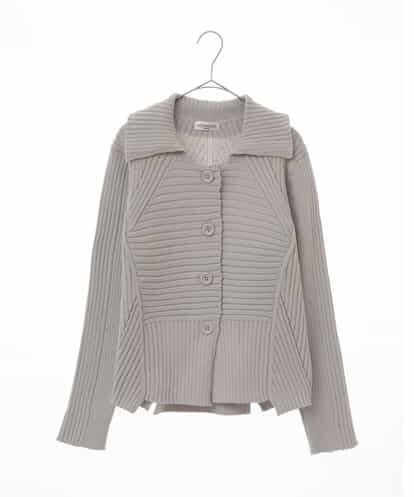 大きなフロントボタンがアクセントのスポーツアパレルにも採用される特殊な軽量糸で編み立てたニットカーディガン。様々な方向に変化を付けた編み地が存在感のある一着です。驚くほど軽い着心地の良さも嬉しいポイント。春の着こなしのアクセントにおススメです!同じ糸で編み立てた【RMFED02210】もお薦めです。