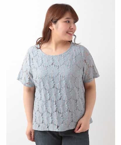 【大きいサイズ】フラワーレースレイヤーカットソー ライトブルー 1