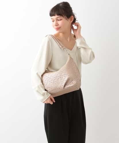 パンチングから輝くスパンコールがのぞくフラワーパンチングショルダーバッグ。シャイニーなフェイクレザーがさらに華やかな雰囲気に。外ポケットや内ポケットなど収納力も抜群。肩掛けとショルダーの2way仕様で使い勝手が良いのも特徴です。合わせやすいカラーなので様々なコーディネートに合わせて頂けます。