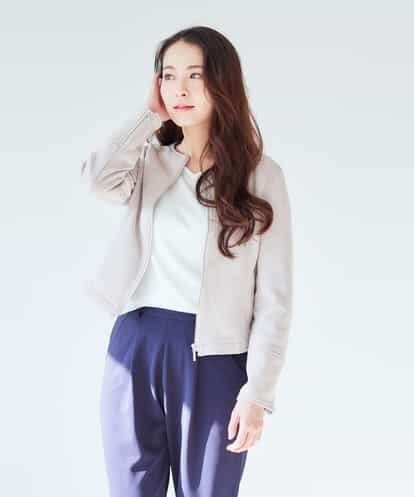 ◆春らしいきれいめカジュアルスタイル◆キレイ目のカジュアルスタイルに重宝する、ボンディングスエードのシングルライダースジャケット。落ち着いた春らしいカラーとフェイクスエードの起毛感がマッチした大人のブルゾンです。スカート合わせも、デニム合わせもキレイ目にきまります!※34(XSサイズ)・42(XLサイズ)はWEB・一部限定店舗での販売です。