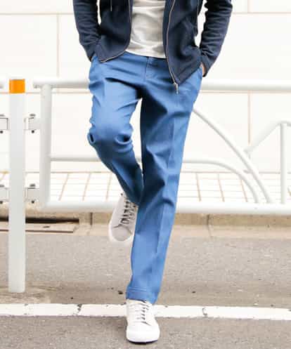 ◆キレイ目デザインのデニムイージートラウザー◆デニムをきれい目なデザインで仕上げたイージートラウザー。カジュアルになりやすいデニム素材をあえてきれい目なデザインにすることで独特の抜け感を演出。細身に見えるシルエットながらタイトになり過ぎない動きやすい一枚です。