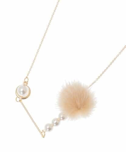 フェイクパール&フェイクファーモチーフネックレス ベージュ 38