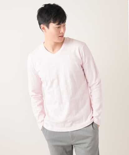シルケットチェックリンクスVネックカットソー[WEB限定サイズ] ライトピンク 52