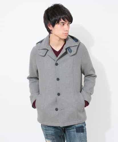 肉厚なメルトン素材のフード付きジャケット。フードはスタイリングに応じて取り外して頂けるので、着回し力もアップ。カッチリとしたイメージで着用して頂ける細身シルエットも魅力です。裏地が付いているので、袖を通しやすく、インナーも傷めません。model:H182 C92 W71 H90 着用サイズ:L