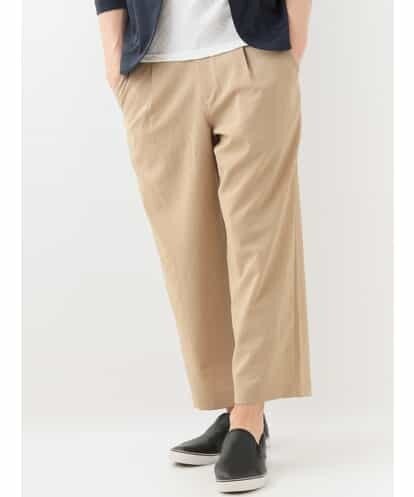 ほんのり縮れた涼し気な素材で仕上げたゆったりシルエットのパンツです。足元はサンダルを合わせたリラックスムードのあるスタイリングがおすすめです。サラっとした肌触りで真夏でも涼しく着用して頂けます。model:H182 C92 W71 H90 着用サイズ:L