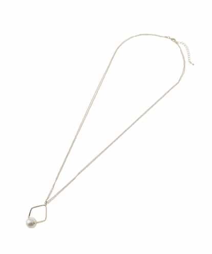 コットンパールとメタルパーツを組み合わせた大き目のモチーフがアクセントになるネックレスです。2種類の細いチェーンが二連になって、動く度に輝くのもポイント。シンプルなコーディネートに合わせるだけで女性らしさを演出してくれるアイテムです。
