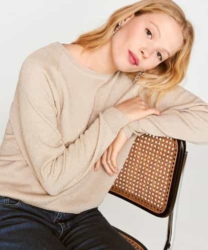ゴージャスな雰囲気を演出してくれるキラキラと輝くラメミックスの糸で編み立てたニットプルオーバー。二重に仕立てた重厚感のあるニット地にラグランスリーブがバランスの良い一着に仕上がっています。model:H170 B81 W59 H88 着用サイズ:M