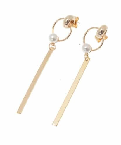 ゆらゆらと動きのあるバーモチーフが魅力的な光沢を演出してくれるピアス。リングや小さなフェイクパールが全体をエレガントにまとめた上品なアクセサリーに仕上がっています。普段使いからドレッシーなコーディネイトまで幅広くお使い頂けます。