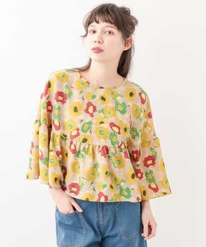 風合いのある手描きタッチのフラワーモチーフが存在感のあるプルオーバータイプのブラウスです。ポンチョの様なシルエットに、切り替えにギャザーを寄せたデザインがフェミニンムードを盛り上げてくれる一着です。同じテキスタイルで仕立てたワンピース【GJEDD41260】、スカート【GJHDD41170】もオススメです。model:H167 B80 W58 H87 着用サイズ:M
