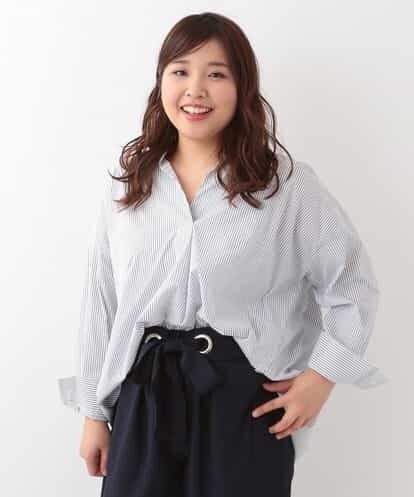 【大きいサイズ】スキッパー&ドロップショルダーシャツ ネイビー 13