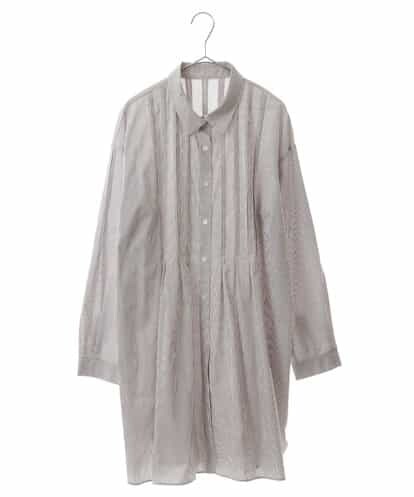 【洗濯機で洗える】ピンタックロングシャツ グレー 15