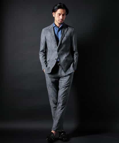「今日は木曜日・・・ホテルでの社外商談がある」 「こんな日はいつもと違う、少し遊びの効いたモダンなセットアップを合わせたい・・・」 今作は、日本を代表する合繊テクノロジーメーカー東レテキスタイルが開発した素材“プライムフレックス”を採用。 ソフトなストレッチで快適な着心地を特徴とし、国内有数のプリント技術を有するセーレンの特殊プリントを施した3D素材です。 縦横にT-400の弾性糸使用で、しぼ感のある360度のストレッチ性があり、型崩れやシワになりづらく、 お手入れがしやすいイージーケアが嬉しい。 360度のストレッチ性があり、ソフトなストレッチで快適な着心地の進化したジャケット。 ブランド12周年を記念しての12ヶ所の拘りから生まれた?シリーズのジャケットです。 そして吸汗速乾性ポリエステル糸のプライムフレックスコアテクノロジーにより、 素早く汗を吸い、素早く乾く機能も兼ね備えております。。 43サイズから52サイズの6サイズ展開をご用意しておりますので、ジャストフィットサイズをお楽しみいただけます。 12ヶ所の拘りから生まれた?シリーズのスーツジャケット。 今の時代を象徴するラペル巾、6.7cmをベースに、 可動域とドレープ性を重視した『ディープセンターベンツ』、 の組み合わせからなるデザイン”α(アルファ)型”のジャケットです。 夏仕様として芯地の種類を薄地タイプ(30d)に変更し、より軽さとカジュアル性を強めた仕様に仕立てており、 御家庭で洗えるのも嬉しいポイント。 セットアップ、単品でのスタイリングと、幅の広い表現をお楽しみいただける至高のアイテム。 春夏のセットアップはこれで決まり。