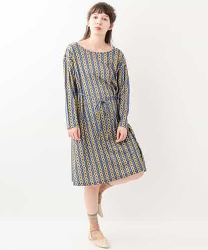 ユルっとしたリラックスムード溢れるプリントワンピース。デコルテラインが大きく開いた首元は女性らしさをより引き立ててくれます。プリントが縦に入っているのでIラインを強調したシルエットに。ウエストに付いた共布のベルトがシルエットのアクセントに。同テキスタイルでプリントカットソー【GJKDD32110】の作りもございます。※インナードレスの着用をおすすめします。model:H167 B80 W58 H87 着用サイズ:M