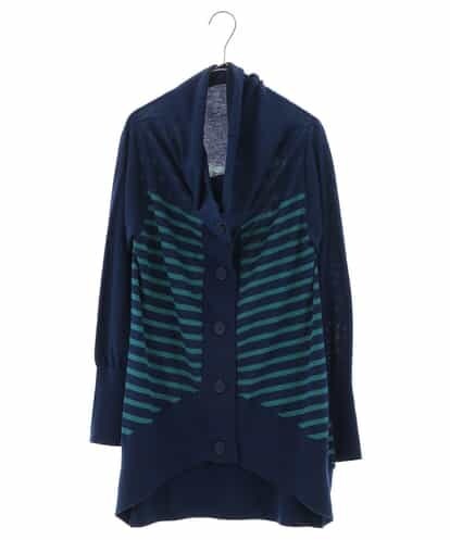 【洗える】デザインボーダーニットジャケット ネイビー 9