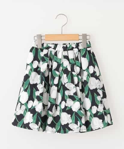 [140-150]チューリッププリントツイルスカート ネイビー 140