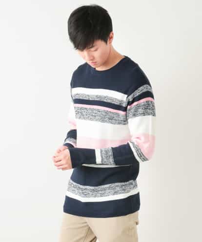 ◆編地でランダムボーダーを表現した新定番のボーダークルーネックニット。◆編地の変化でランダムボーダーを表現したクルーネックニット。様々な編地を段々に組み合わせてボーダーを表現、部分的に使用した春カラ?がポイントです。 カットソーの上に着るのはもちろん、シャツとの組み合わせもおすすめなデイリーユースに着て頂ける一枚です。
