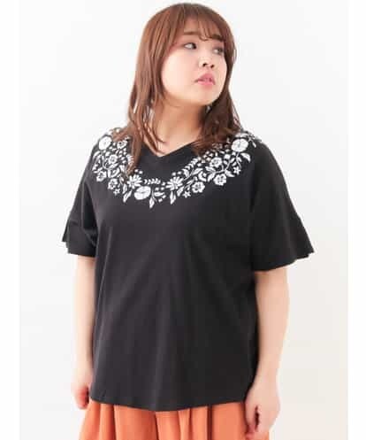 【大きいサイズ】フラワープリントカットソー ブラック 1