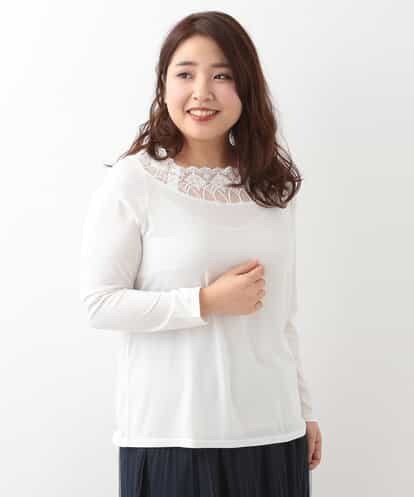 【大きいサイズ】レースドッキングカットソー アイボリー 1