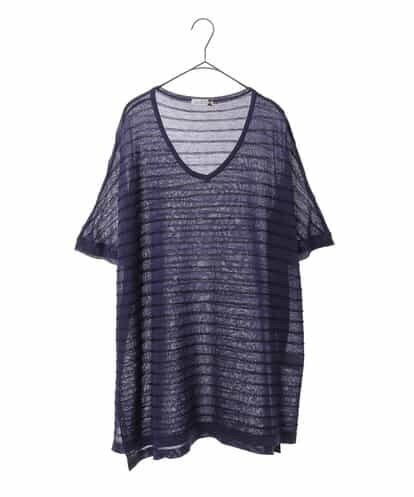 今年らしいビッグシルエットがトレンド感を演出する半袖ニットプルオーバー。Vネックは顔周りをすっきりと見せ、ボーダー状に入れたラメ糸がアクセントをプラス。サイドにスリットが入っているのでボリュームのあるスカートやガウチョパンツと合わせて頂くのもお勧め。
