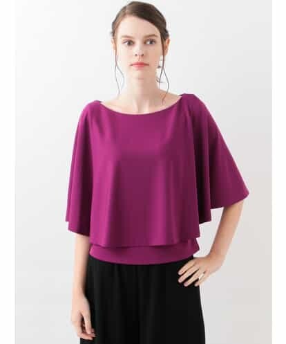 接ぎ目の無いケープが洗練された印象の、ドッキングカットソー。スリーブレスのトップスにケープを羽織った様なデザインになっています。ケープを肩にかけてドレープを活かした着用も出来る個性的なアイテムです。シワになりにくい素材も嬉しいポイントになった素敵な一着です。model:H170 B81 W59 H88 着用サイズ:M