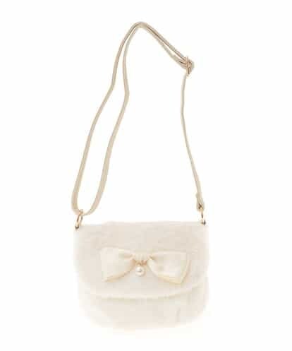 ◆トレンドのフェイクファーがかわいい◆今年のトレンド、ファー素材のポシェット。大ぶりなグログランのリボン中央にパール調パーツをあしらった価値観のあるデザインです。冬のお出かけシーンにピッタリ!