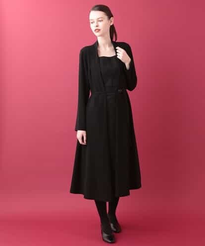 ベルトリボン付きドレープロングジャケット ブラック 36