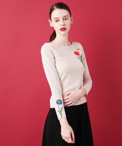 フラワー刺繍ニットプルオーバー ベージュ 44