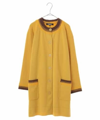襟やそで、ポケットにニードルパンチを入れてカラーブロックにニュアンスを加えたロングカーディガン。鮮やかなカラーが着ポイントになるカーディガンは、ボリュームボトムと合わせて新しいシルエットを楽しんで。コートになる前の羽織として、またコートインにもおススメです。