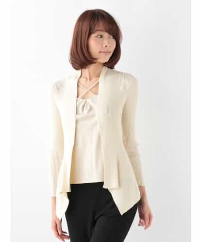 ウエスト切り替えリブニットカーディガン アイボリー 40