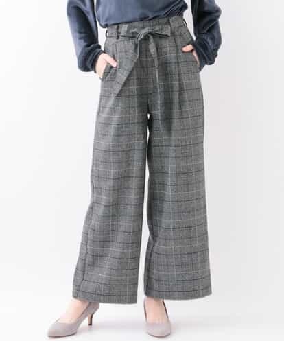 サッシュリボン付きグレンチェックパンツ[WEB限定サイズ] ネイビー 42