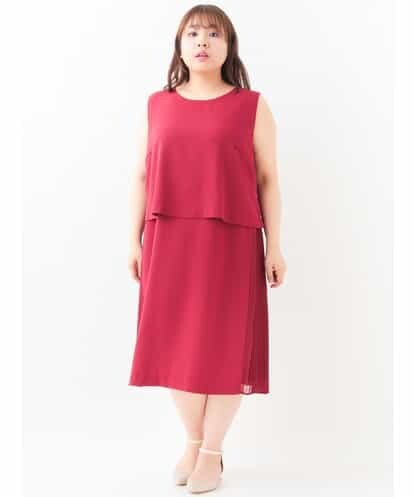 【大きいサイズ】セットアップ風サイドプリーツワンピース ワイン 15