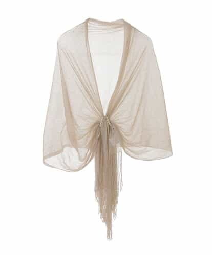 柔らかく繊細な手触りで、上品なデザインが美しいラメストールです。ホックで留めることができるフェイクパールモチーフがアクセントになり、様々なパーティーシーンで活躍できるアイテムです。