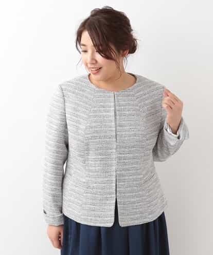 【大きいサイズ】ラメツイードノーカラージャケット ダークグレー 17