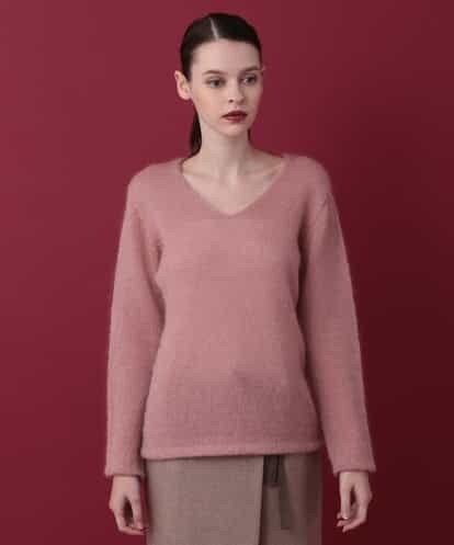 キャメロットモヘヤ混Vネックニット ライトピンク 36