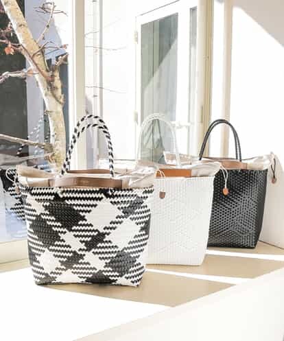 編み込みデザインでバスケットのような雰囲気のあるトートバッグ。中には巾着型のインナーバッグが入って取り外しも可能になっています。ヒモをキュっと絞れば、開口部も閉まって安心。A4サイズもすっぽり入るサイズ感で、収納力も抜群です。