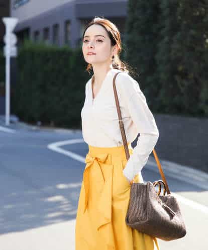 ■使い勝手◎な万能Vネックニット■ シャープなVネックが女性らしくすっきりと見せてくれるニットPO。しっかりとした肉感が1枚着でも嬉しい。後ろ身頃を繊細なリブ地に切り替えることで、シンプルな中にもこだわりのあるデザインに。スカート、パンツとボトムを選ばず着回せる万能ニットは、アクセントカラーもおすすめ。お仕事からお休みの日まで幅広く活躍してくれるはず。屋外での撮影は色味が多少異なる場合がございます。商品の色味は、スタジオ撮影の画像をご参照ください。