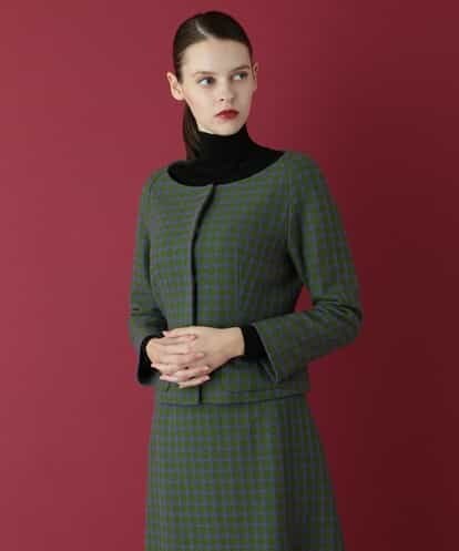 大胆なドット柄のジャケット。ジャガードのテクニックで織られた生地は、程よくハリがありシルエットが崩れません。ノーカラーのデザインで、スカートでもパンツでもボトムスを選ばずバランスよく着ていただけます。同素材のスカート【GBHAE27230】とセットアップも組んでいただけます。 ジャケットのインナーに着用の商品は【GBFAE06230】でございます。model:H170 B80 W58 H81 着用サイズ:M