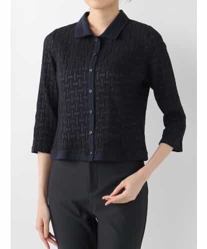 [クリスチャンオジャールレギュラーサイズ] コットン素材のシースルー生地に細かいギャザーを縦横に施したデザイン性の高い7分丈シャツです。襟や裾・前立てには違素材コットンを使用し着こなしがリッチに決まります。肌触りが軽やかで伸縮性もあり暑い日でも快適に過ごせる一着です!model:H170 B80 W60 H86 着用サイズ:09