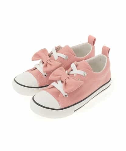 ◆着脱可能なリボンモチーフがポイント◆同素材のリボンモチーフが付いたキャンバススニーカー。リボンは取り外し可能です。これからの季節のおでかけがより一層楽しくなるデザインです♪