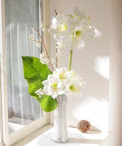 春の明るい光がさすリビングを彩る、ホワイト×グリーンのコレクションです。※巧妙な造りのアートフラワーです。お水を必要としませんので特別なお手入れがいらず長期間お楽しみいただけます。※掲載写真の色やサイズが多少異なる場合もございます。※こちらの商品のラッピングは一種類となります。※こちらの商品は、らくらく引越便(特大サイズ)にて配送を承ります。詳しくはこちらをご参照ください。