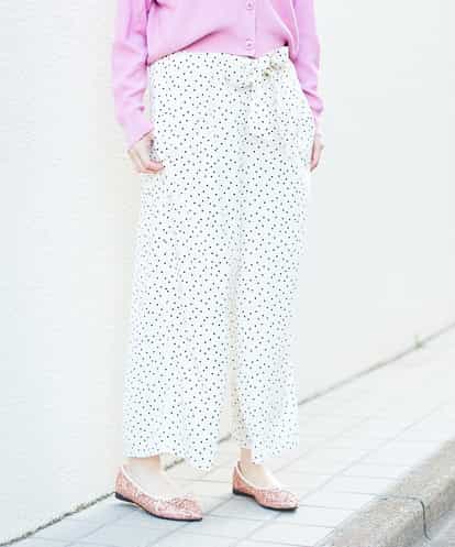 ◆フレンチテイストワイドドットパンツ◆トレンドのドットプリンントのワイドパンツです。ランダムなドット柄は大人ブランドならではカラーバリエーションは定番のネイビー×シロドットとホワイト×クロドット。カラーニットに合わせやすい展開です。