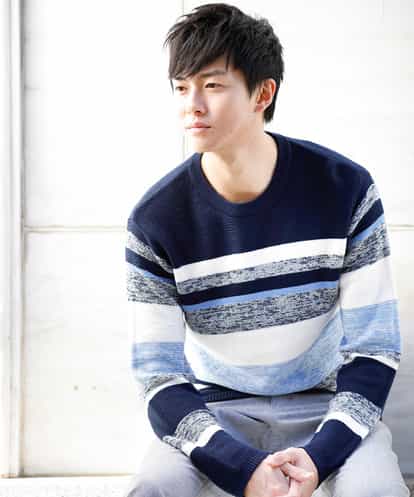◆編地でランダムボーダーを表現した新定番のボーダークルーネックニット。◆編地の変化でランダムボーダーを表現したクルーネックニット。様々な編地を段々に組み合わせてボーダーを表現、部分的に使用した春カラ?がポイントです。 カットソーの上に着るのはもちろん、シャツとの組み合わせもおすすめなデイリーユースに着て頂ける一枚です。