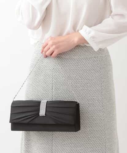 パーティシーンに活躍するエレガントなクラッチバッグ。微光沢が美しいサテン生地でリボンをデザインし、フロントのビジューで華やかさをプラスしました。やり過ぎない品の良いデザインが様々なドレススタイルに好相性。アクセサリー感覚で持てるクラッチバッグです。※ショルダーベルト付き