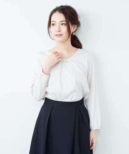 ◆通勤&きちんとスタイル◆秋に人気だったメタルバーブラウスの長袖バージョンです。ネックラインのフロントにほどこされたメタルバーが目を惹く、大人の上品な要素をプラスしてくれるブラウス♪オン・オフ兼用で使い回しの効く、とても嬉しい1枚です。※34(XSサイズ)・42(XLサイズ)はWEB・一部限定店舗での販売です。