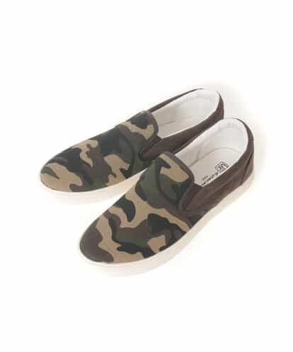 カモフラージュ柄のスリッポン。脱ぎ履きが楽なスリッポンスタイル。スッキリとしたデザインのアイテムで、カジュアルにも綺麗目にも合わせて頂けます。