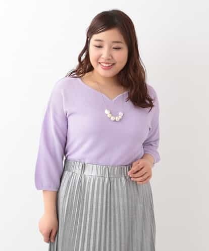 【大きいサイズ】首元に注目!ハートネックニット ラベンダー 1