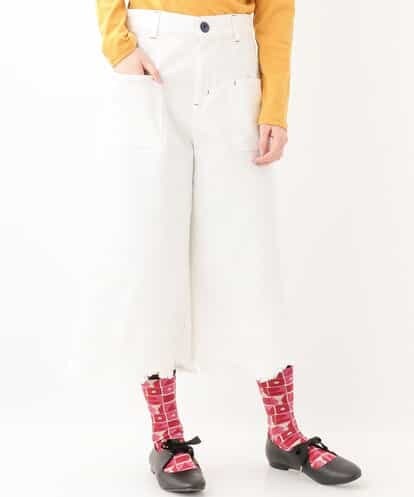 lazo DENIM スカラップ&フリンジデニムバギー ホワイト 42
