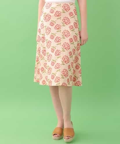 肌触りの良いコットンミックスジャージーに施した、フラワーモチーフのクロスステッチ刺繍が目を惹くスカート。テキスタイルの持つ魅力を活かしたゆったりとしたセミフレアシルエットに、表情感たっぷりのステッチが魅力的な一着です。レトロシックな雰囲気の中にしっかりとモダンなエッセンスをプラスした存在感のある仕上がりになっています。同じテキスタイルで仕立てた 【GBKDD10330】、 【GBPDD21590】 もオススメです。※バックファスナー、裏地付きmodel:H170 B80 W58 H81 着用サイズ:M